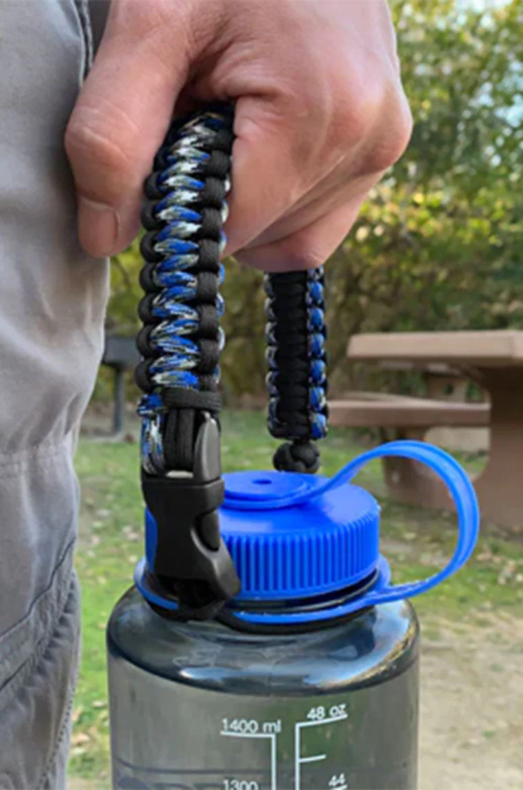 - Easy to remove and clean after rugged use, this paracord water bottle handle will become an essential piece of your backpacking gear, hiking gear and camping accessories. Having your water bottle with you is the key to hydration